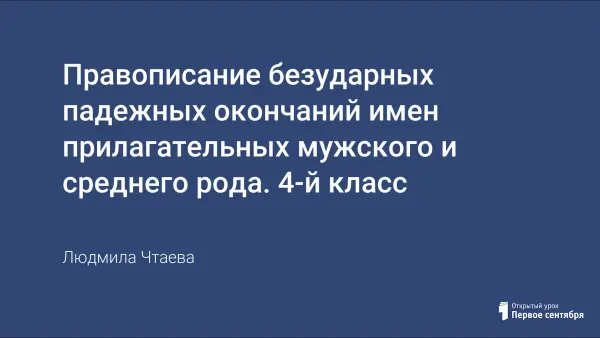 Цели урока: развивать умение правильно употреблять и писать падежные окончания имён прилагательных мужского и среднего рода; формировать умение обосновывать написание окончаний; развивать орфографическую зоркость; воспитывать самостоятельность, чувство взаимопомощи.