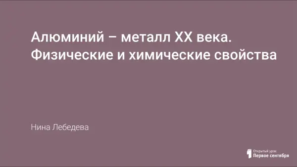 Урок формирует знания о химическом элементе алюминии и его свойствах как простого вещества. Разбирается положение алюминия в таблице Д.И. Менделеева, строение его атома; физические свойства алюминия изучаются на основе лабораторной работы. Также на основе взаимодействия алюминия с оксидами металлов и взаимодействия алюминия с кислотами и со щелочами делается вывод об амфотерности алюминия.