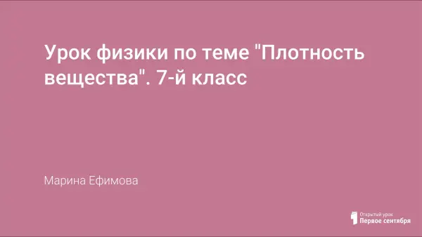 Урок применяет деятельностный подход в обучении, формирует представление о плотности, способе определения данной физической величины, выясняет ее физический смысл.