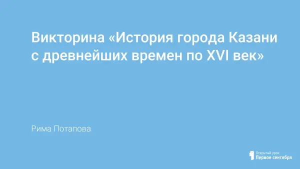 Данная викторина содержит исторический материал о городе Казани, который может быть использован как дополнительный материал на уроке и во внеурочной деятельности. Связь фактического материала с легендами пробудит интерес обучающихся к истории родного края и расширит их кругозор.