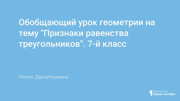 Результат усвоения темы выявляет урок-зачет или контрольная работа. Поэтому накануне целесообразно провести обобщающий урок, на котором повторяется теоретическая часть, проводится тестирование на знание признаков равенства треугольников. Также решаются более сложные задачи, идет подготовка к контрольной работе.