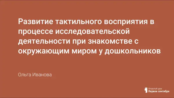 Работа с детьми развивает тактильное восприятие в ходе экспериментирования и знакомства с явлениями и объектами окружающего мира. В исследовательской деятельности формируется тактильно-кинестетический анализ и синтез признаков и свойств предметного мира у детей, умения использовать осязание в разных видах деятельности.