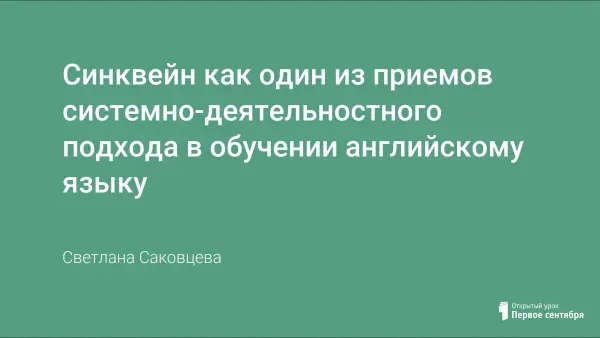 В статье представлен синквейн как один из приемов системно-деятельностного подхода. В статье описывается происхождение синквейна, правила его составления, алгоритм работы над синквейном. В приложениях приводятся примеры вариантов синквейнов по разным темам.