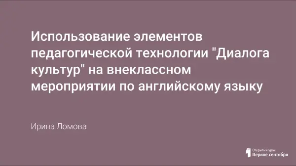В статье рассматривается практическое применение элементов педагогической технологии Диалога культур на внеклассном мероприятии по английскому языку. Взаимодействие с иноязычной культурой должно происходить одновременно с уроками по английскому языку и иметь практическое применение. Через собственные работы реализуется деятельностный подход в изучении языка, происходит собственное «рождение знаний», осознание практической необходимости изучения предмета иностранный язык.