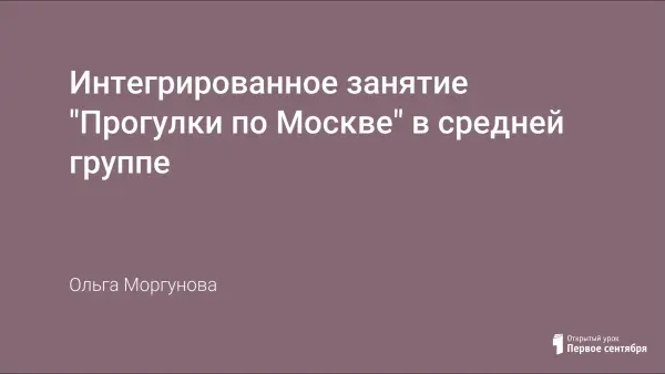 Pанятие разработано как итоговое к проекту «Прогулки по Москве». Цель: закрепление знаний о своём родном городе, развитие речи, развитие умения делиться своими впечатлениями, воспитание патриотических чувств.