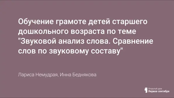 Обучение грамоте детей старшего дошкольного возраста по теме "Звуковой анализ слова. Сравнение слов по звуковому составу"