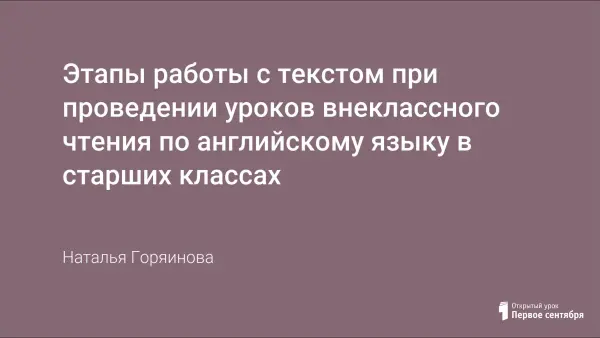 Данный урок представлен на отработку навыков чтения в рамках внеклассного (домашнего) чтения при изучении английского языка в 9-м классе. В статье представлены основные этапы и формы работы с текстом на разных этапах.