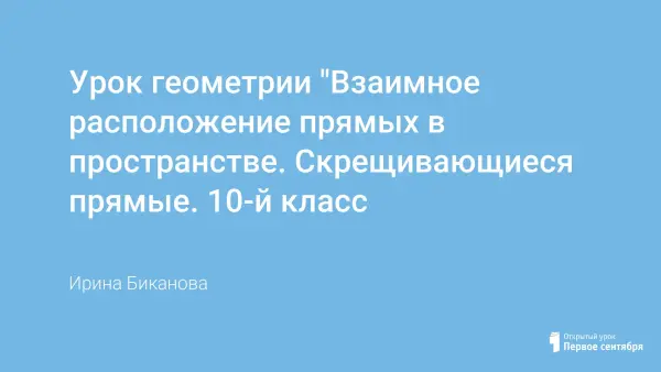 Данный урок, построенный с применением современных компьютерных технологий, цифрового образовательного ресурса "Уроки геометрии Кирилла и Мефодия, 10-й класс", позволит не только познакомить учащихся с понятием скрещивающихся прямых, рассмотреть признак скрещивающихся прямых, но и позволит обучающимся пошагово отслеживать этапы решения задач. Включение групповой деятельности и дифференцированных заданий направлено на формирование у учащихся навыков исследовательской работы.