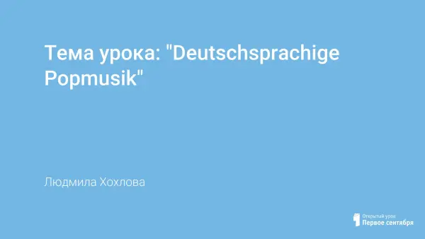 Предлагается урок немецкого языка по теме «Музыка» из раздела «Творческая культура». Из общей темы выделяется подтема «Современная немецкоязычная музыка». Цель: развитие коммуникативных умений (чтение, письмо, говорение, аудирование).