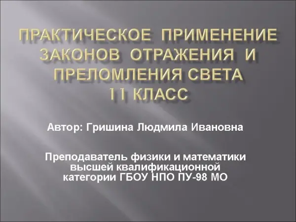 Урок показывает практическое применение законов геометрической оптики в науке, технике, оптических приборах, медицине, на транспорте, в строительстве, быту, окружающем мире.