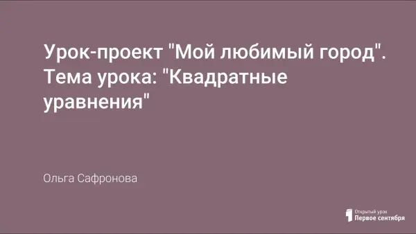 Заключительный урок по теме «Квадратные уравнения» повторяет основные понятия, свойства, формулы, обобщает знания и уточняет ключевые вопросы по теме. Интегрированный урок показывает учащимся взаимосвязь математики и истории города. Расширяет кругозор учащихся, повышает интерес к родному городу.
