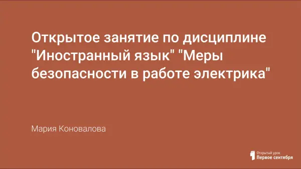 Тема занятия является актуальной для будущих специалистов, т.к. напрямую касается сохранности здоровья и жизни техника-электрика и окружающих его людей. На занятии по иностранному языку эта тема была рассмотрена также с точки зрения международных стандартов.