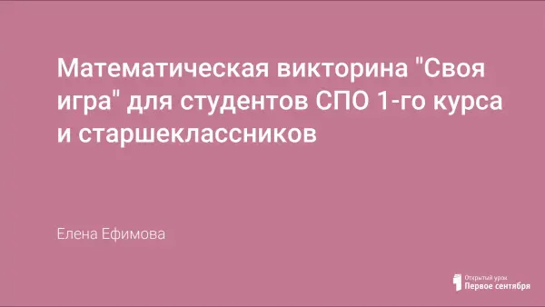Сценарий математической викторины может быть использован при проведении недели математики у учащихся 8–11-х классов и студентов 1-го курса среднего профессионального образования. Викторина не требует глубоких знаний математики и направлена на развитие общей эрудиции студентов. Представленная в приложении презентация вопросов–ответов выполнена с использованием гиперссылок и позволяет проводить мероприятие максимально эффективно.