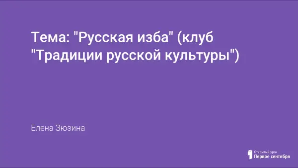 Урок знакомит учащихся со строением русской избы, с её внутренним убранством; формирует образные представления об организации, мудром устроении человеком внутреннего пространства избы. Цель: воспитывать уважение к русскому быту, культуре и традициям русского народа; корректировать устную речь учащихся.