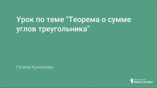 На уроке повторяется пройденный материал, доказывается теорема о сумме углов треугольника. Дается небольшая историческая справка. В ходе индивидуальной и коллективной работы выводится следствие из теоремы, показывается применение теоремы при решении задач.