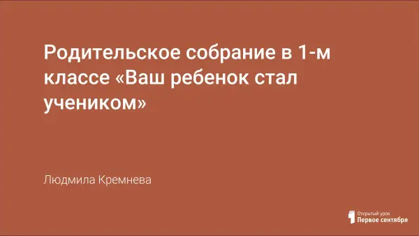 Родительское собрание в конце сентября – начале октября в 1-м классе, где учатся дети по УМК ОС «Школа-2100». Используя прием «деловой игры», учитель создает проблемную ситуацию и проводит групповую работу, в результате которой вводится понятие «системно-деятельностный подход».