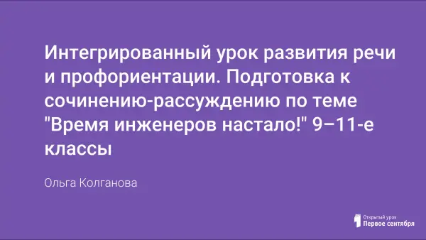 Цель урока: написать сочинение-рассуждение на тему «Время инженеров настало!». При этом используется информация, полученная на классных и экскурсиях, проводимых в течение года. Таким образом расширяется представление об инженерных профессиях; формируется позитивная оценка умственного труда.