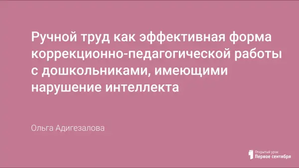 В дошкольных учреждениях для детей с нарушением интеллекта на третьем году обучения вводятся занятия по ручному труду, которые по программе относятся к направлению трудового воспитания. Ручной труд оказывает большое коррекционное значение на психическое и физическое развитие, на личность ребенка. Дети знакомятся с различными материалами, способами работы с ними. В результате развивается внимание, мышление, обогащается словарь и речь детей, формируются положительные качества личности.