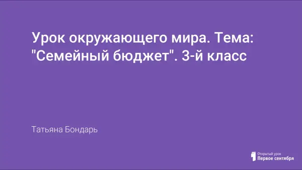 Урок окружающего мира. Тема: "Семейный бюджет". 3-й класс