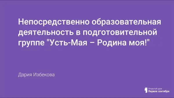 Непосредственно образовательная деятельность в подготовительной группе обогащает представление детей о родном поселке, плане и карте местности, гербе и флаге Усть-Майского района; знакомит со стихами местного поэта Николая Варлакова. Занятие развивает речь, мышление, кругозор детей, активизирует словарь, воспитывают чувство патриотизма.