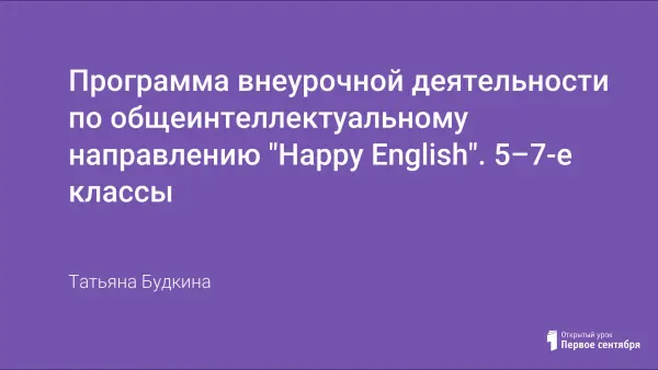 В программе представлены разнообразные формы мероприятий: викторины, КВНы, конкурсы, игры, литературные и музыкальные гостиные, праздники, вечера, проектная деятельность, сюжетно-ролевые игры. Ее содержание тесно связано с изучением учебного курса английского языка по программе для 2–11-х классов общеобразовательных учреждений М.З. Биболетовой и Н.Н. Трубаневой «Английский с удовольствием Enjoy English». В увлекательной форме закрепляются знания, умения и навыки, расширяются границы изучения курса.
