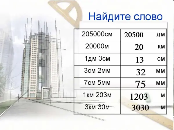 Урок закрепляет тему. Учащимся предлагается вспомнить перевод линейных единиц измерения. Далее приводится историческая справка о различных единицах измерения площади у разных народов. Небольшая разминка в качестве подсчета прямоугольников, развивает внимание. После повторения формулы площади прямоугольника рассматриваются различные варианты ее применения для вычисления площадей других фигур (треугольника, трапеции, четырехугольника).