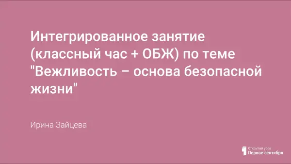 Фрагмент интегрированного занятия (классный час + ОБЖ) формирует ценностно-смысловые установки по безопасности жизни. Введение в тему происходит при помощи проблемной ситуации.
