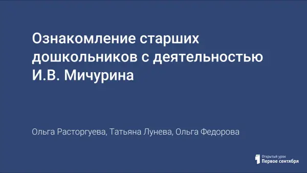 Ознакомление старших дошкольников с деятельностью И.В. Мичурина