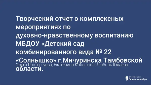 Творческий отчет о комплексных мероприятиях по духовно-нравственному воспитанию МБДОУ «Детский сад комбинированного вида № 22 «Солнышко» г.Мичуринска Тамбовской области.