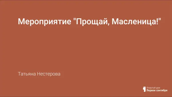 Мероприятие приобщает детей к русским народным праздникам в различных видах деятельности. Цель: познакомить детей с народным обрядовым праздником Масленицы, ее значением, традициями; обогатить словарный запас фольклором; тренировать в ловкости, согласованности движений, умении действовать в команде; доставить детям радость, удовольствие от совместной деятельности (игры, забавы).