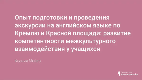 В статье описана экскурсия по Кремлю и Красной площади на английском языке, где в роли экскурсоводов выступили дети 11–14 лет, учащиеся в объединении "Юный гид-переводчик", слушателей – студенты РУДН, для которых английский язык родной. Обучение по программе "Юный гид-переводчик" формирует у детей компетенции межкультурного и социального общения. В статье приведена схема экскурсии, а в приложении – тексты для подготовки.