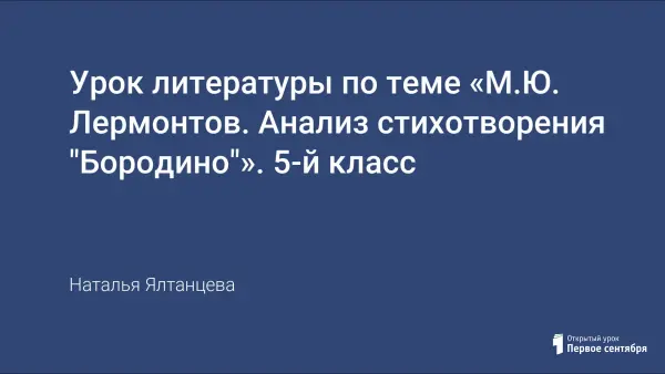 Урок представляет некоторые элементы анализа и служит подготовительной работой на пути к комплексному исследованию поэтических текстов. Основная направленность урока – глубокое эмоциональное восприятие картины Бородинского сражения, проникновение чувством патриотизма.