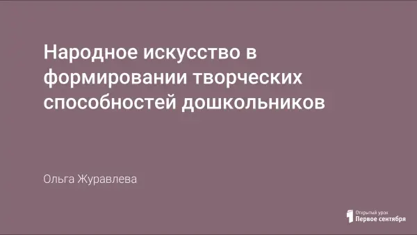 Культуру России невозможно представить себе без народного искусства, которое раскрывает источники духовной жизни русского народа, наглядно демонстрирует его моральные, эстетические ценности, художественный вкус и представляет собой часть истории. Процесс познания и усвоения должен начинаться как можно раньше, только в этом случае народное искусство оставит в душе ребенка глубокий след, вызовет устойчивый интерес.