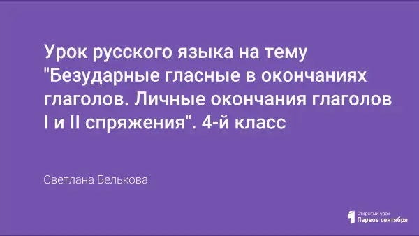 Цель урока: систематизирование существенных признаков при определении написания безударных гласных в окончании глаголов. Задачи: закрепить знания учащихся о правописании безударных личных окончаний глаголов; развивать устойчивость внимания, творческое воображение, оперативность мысли, речевые способности; воспитывать стремление к овладению грамотной речи.
