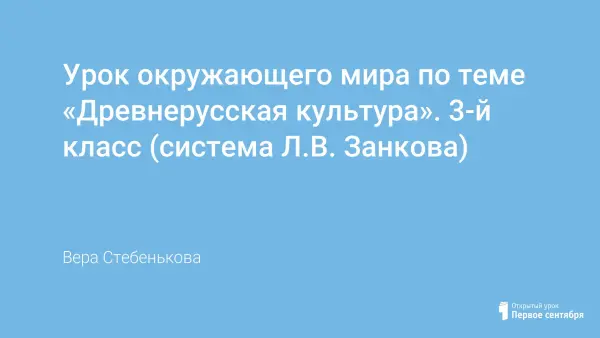Урок знакомит с дневнерусской культурой. Учащиеся знакомятся с основными понятиями культуры: "зодчество", "прикладное исскуство", "народное творчество". Раскрываются особенности древнерусской культуры – материальная и духовная.