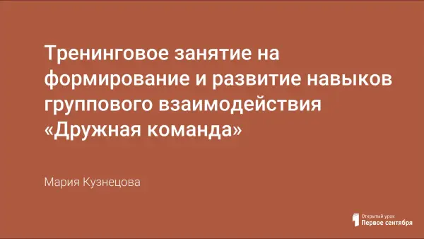 Тренинговое занятие направлено на формирование и развитие навыков группового взаимодействия. Цели занятия: формирование групповой сплоченности; формирование умений общаться, освоение способов и приемов эффективной коммуникации; развитие творческого самовыражения участников группы.