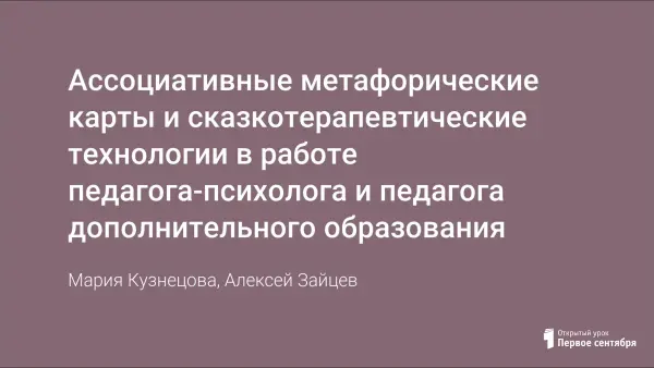 Ассоциативные метафорические карты и сказкотерапевтические технологии в работе педагога-психолога и педагога дополнительного образования