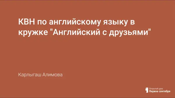 Урок-соревнование в форме КВН воспитывает нравственные, дружеские отношения в детском коллективе, закрепляет материал разнообразными игровыми формами работы. Мероприятие активизирует лексические и грамматические умения и навыки учащихся, полученные во время учебного процесса; развивает интеллектуальные и познавательные способности учащихся; воспитывает потребность в общении на английском языке.