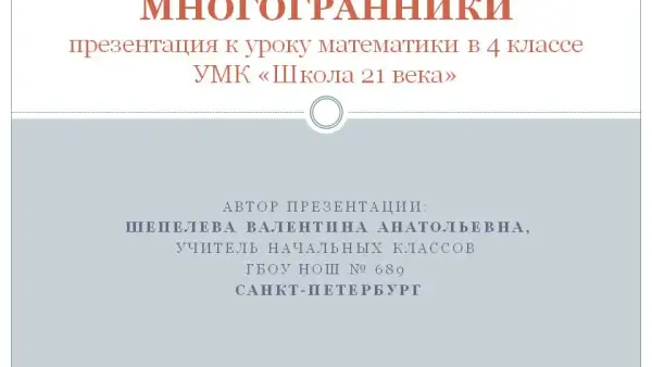 Урок расширяет теоретические знания о пространственных фигурах. В течение уроков дети усваивают понятие «многогранник» и его составляющие, учатся использовать эти знания в практике. На уроках предполагаются групповые формы работы,что дает возможность раскрыться всем учащимся, мотивировать детей на дальнейшую исследовательскую деятельность.