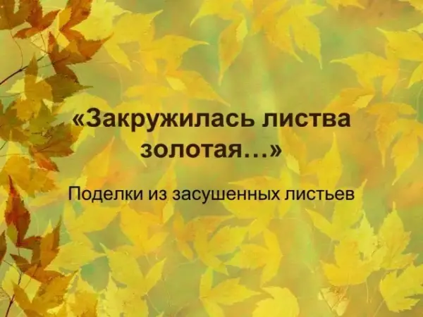 Цель занятия: учить детей работать с природными материалами, засушенными листьями, правильно пользоваться ножницами и клеем, развивать воображение, мышление.