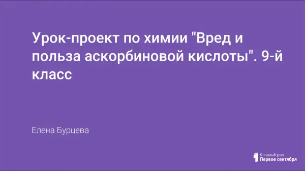 Метапредметный урок подводит учащихся к самостоятельному, осознанному пониманию химико-биологической роли аскорбиновой кислоты. Занятие рассчитано на учащихся 9–10-х классов профильного обучения. Учащиеся делятся на группы: «Изобретатели», «Теоретики», «Химики-исследователи», «Эксперты». Им дается задание с различными источниками информации: таблицы, схемы, опорные конспекты, химическое оборудование, видеоматериалы.