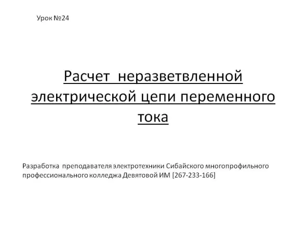 В работе представлены правила расчета неразветвленной электрической цепи переменного тока с помощью векторных диаграмм. Векторные диаграммы для описания синусоидальных сигналов позволяют использовать геометрические приемы для расчета электрической цепи. В практической части исследования измеряются токи и напряжения на активном сопротивлении, катушке и конденсаторе и сравниваются результаты измерений и расчетов.