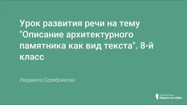 Цель урока: формирование умений находить языковые средства, соответствующие стилю текста, определение тип речи, конструирование текст данного стиля и типа. А также обучение описанию памятника архитектуры. Данный урок работает на формирование навыков работы с текстом, что является одной из основных компетенций, которыми должны овладеть обучающиеся по окончании основной школы.
