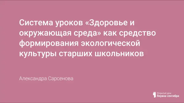 Система уроков «Здоровье и окружающая среда» как средство формирования экологической культуры старших школьников