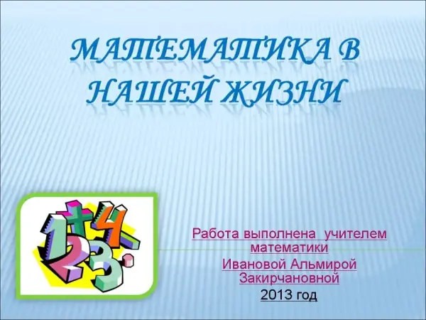 Цель занятия: прививать интерес к математике, познакомить с различными отраслями, в которых применяется математика, показать красоту математики; расширить знания учащихся; развивать познавательный интерес, интеллект; воспитывать стремление к непрерывному совершенствованию знаний.