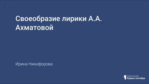 Тема, посвященная А.А. Ахматовой, имеет важное значение в разделе «Поэзия Серебряного века». На занятии используются два важных метода: погружение и проблемно-поисковый. Целесообразно сформировать 5 групп по 5 человек и группу учащихся-аналитиков – 2–3 человека. Задача аналитиков состоит в том, чтобы обобщить сказанное на уроке, найти «минусы» и «плюсы» в ответах товарищей.