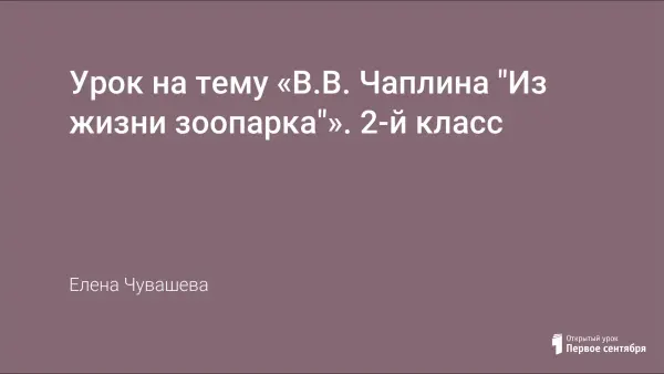 Урок проводится в форме беседы, викторины, в ходе которого учащиеся познакомятся с творчеством В. Чаплиной; научатся отличать особенности жизни животных в зоопарке. Урок повышает познавательную активность; развивает умение пересказывать.