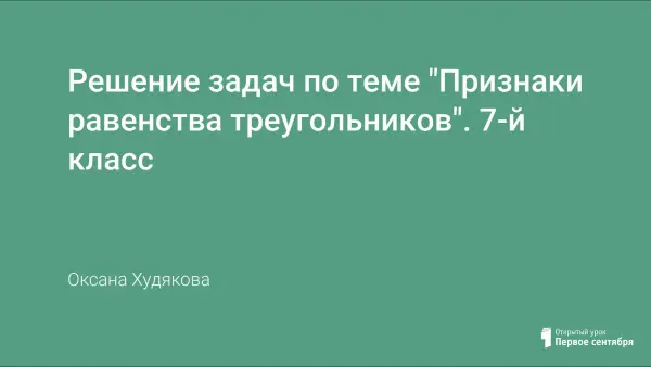 Данный урок по геометрии в 7-м классе рассчитан на 45 минут. Урок будет хорошо восприниматься учащимися в конце изучения темы «Признаки равенства треугольников» до проведения контрольной работы.