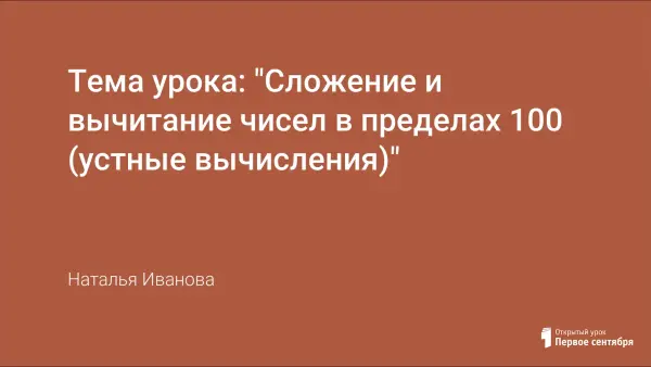 Урок закрепляет знания сложения и вычитания в пределах 100.