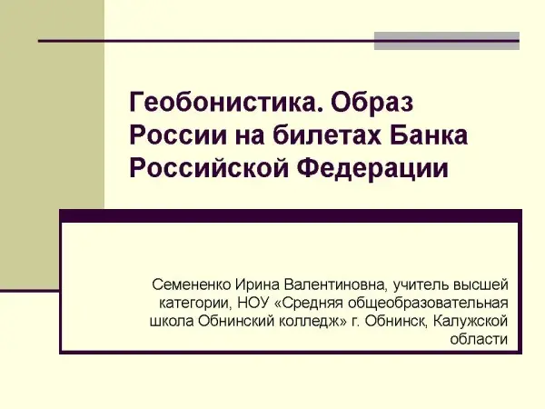 Актуальность предложенной темы заключается в пробуждении интереса к городам своей родины. Рассмотрены банкноты Банка России современного образца. Учащимся предлагается заполнить таблицу, определив, какие достопримечательности этих городов изображены на банкнотах. Выяснить факторы образования города, какие отрасли хозяйства характерны для этих городов. В ходе работы ребята наносят на контурные карты отраслевую структуру этих городов.